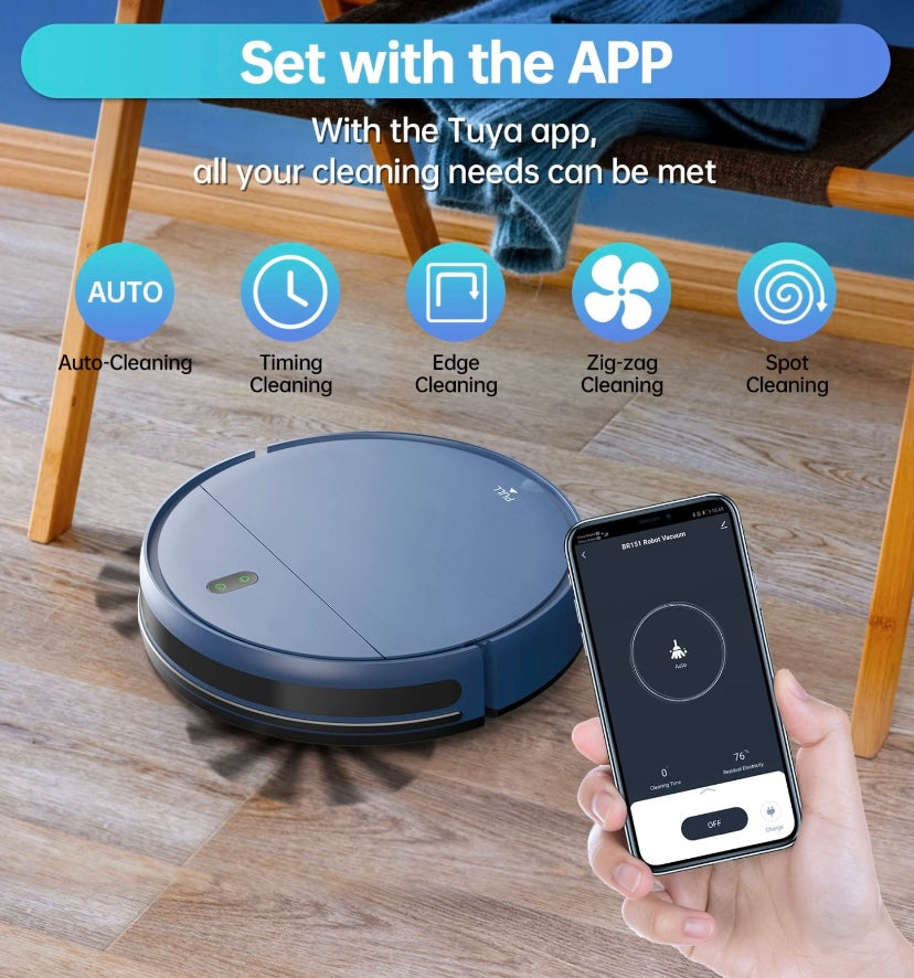 Le robot aspirateur et balai ZCWA (BR151) est un système de nettoyage 2 en 1 polyvalent, doté d'une télécommande, d'un réservoir d'eau et d'un bac à poussière. Grâce à ses capacités d'auto-chargement et à sa compatibilité avec Alexa et le WiFi, cet aspirateur peut être facilement contrôlé par des commandes vocales ou une application. Ses capteurs intelligents évitent les collisions et les chutes, tandis que ses différents modes de nettoyage s'adaptent à toutes les surfaces de sol. Simplifiez votre routine de nettoyage avec ce produit indispensable.