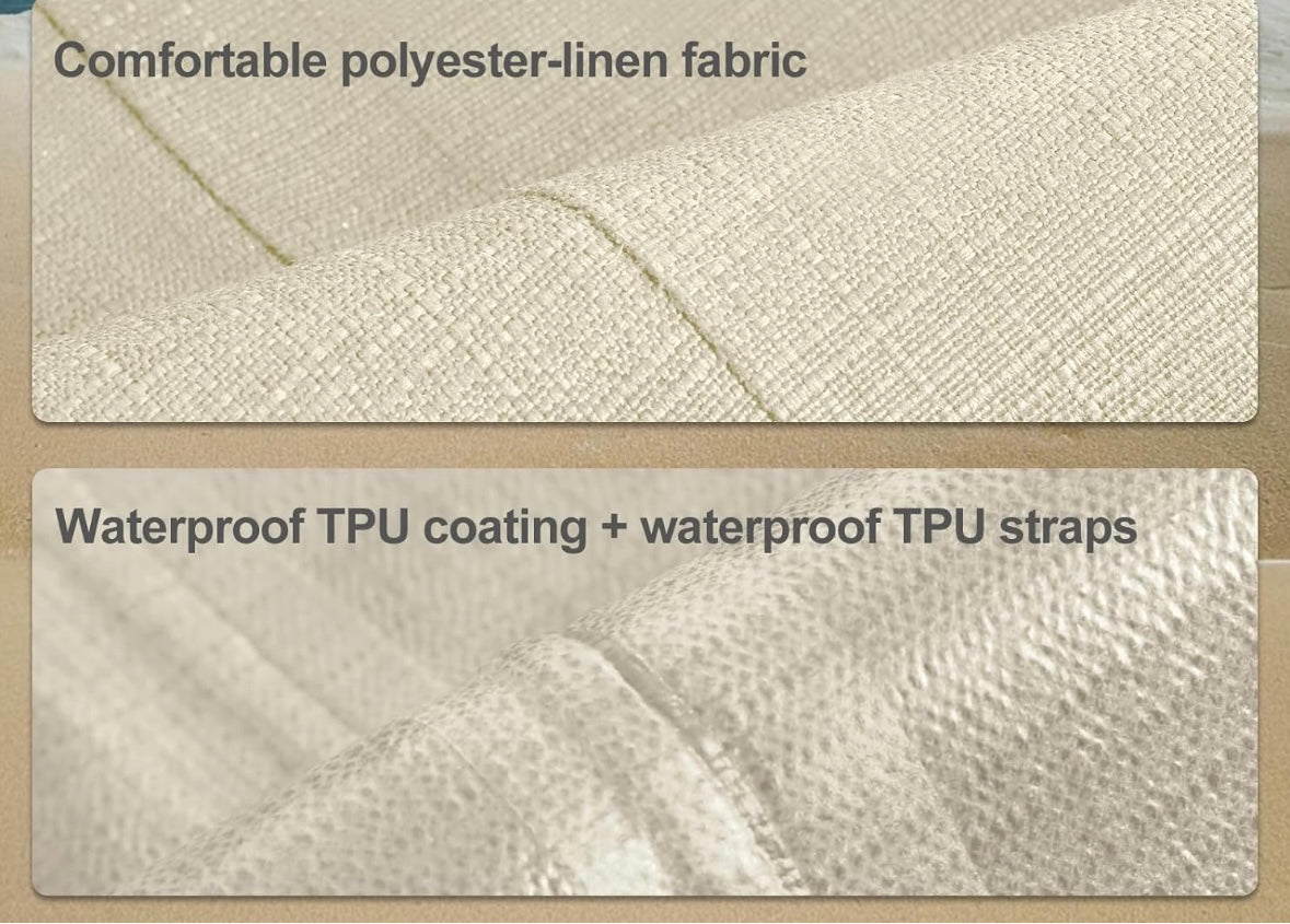Get ready to lounge in style with the Favoyard Chaise Lounge Cushion! Wrapped in soft beige polyester linen, this cushion pairs comfy memory foam with high-density support to keep you relaxed all day long. Water and UV resistant, it’s built for fun in the sun without fading or sogginess. The hidden zipper and removable covers make cleaning a breeze, while six handy straps keep it snug on your chaise. Whether poolside or backyard chilling, this playful rectangular cushion (72" x 21" x 3" seat, 21" x 28" x 3" back) turns your outdoor space into the ultimate chill zone.