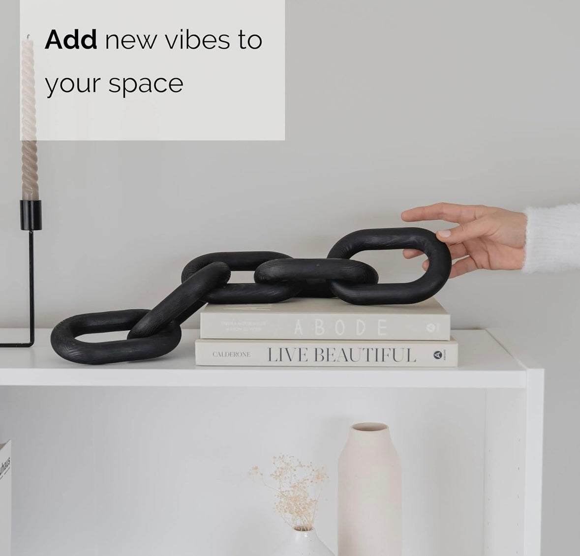 Elevate your space with the modern Product Elevations 5 Link Wood Chain. Its lightweight and sleek design adds a touch of sophistication to any room. Use it to display books or as a unique centerpiece on your table. Easy to maintain and effortlessly chic.