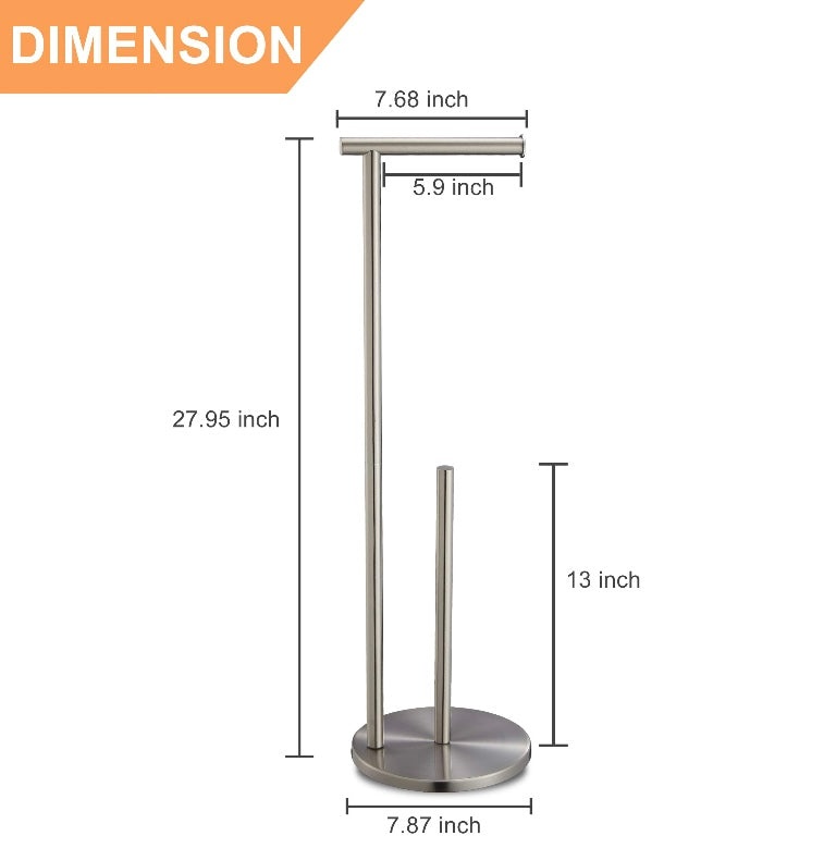 Introducing the Decluttr Toilet Paper Holder - the perfect solution for organizing your bathroom. The stainless steel, rustproof stand can hold up to four jumbo rolls and has a brushed nickel finish for a touch of elegance. With easy, drill-free assembly, this stand is a must-have for any bathroom.