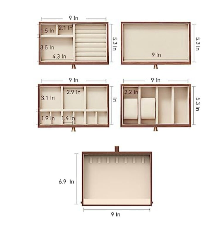 Expertly crafted from 100% natural black walnut with a polished finish, the Homruilink jewelry box features 4 layers and velvet lining for organizing earrings, bracelets, rings, and more. Its solid brass hardware, including a glass lid and pull-out necklace storage, make it a stylish and functional addition to any collection. Perfect for gifting on special occasions.