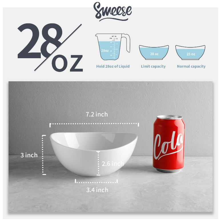 Upgrade your dining experience with the professional grade Sweese Porcelain Bowls. This 6 piece set of white, porcelain dishes is perfect for serving cereal, salad, or pasta with its unique shape. Dishwasher and microwave safe, these dishes are both convenient and stylish, perfect for elevating your kitchen.