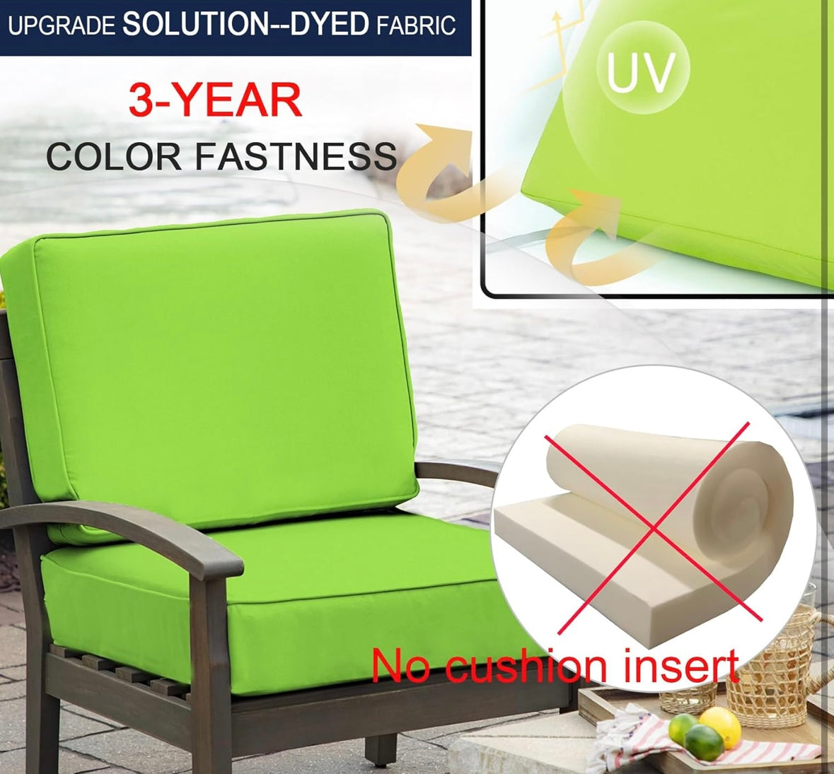 Give your outdoor cushions a lively green update with the NettyPro Patio Cushion Covers! This playful 4-pack, measuring 24" x 22" x 4", fits most deep seat cushions for chairs, loveseats, and sofas, staying secure with handy zipper ties. Made from durable, water- and fade-resistant polyester, these covers resist wrinkles and UV rays, perfect for sunny days. Wide zipper openings make cushion swapping easy and fun, and cleaning is simple with hand wash or spot clean. A vibrant, practical way to brighten your patio style!
