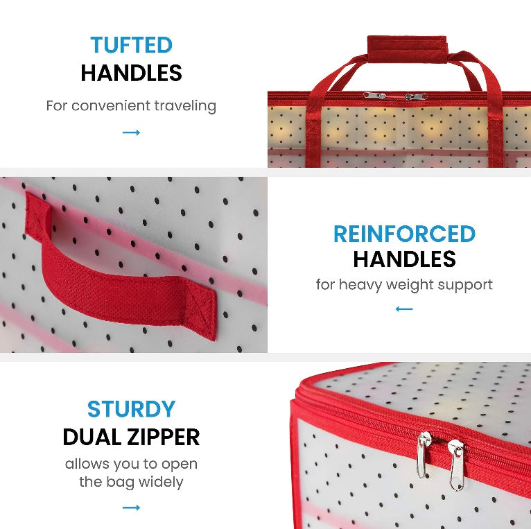 Safely store and easily access your cherished Christmas ornaments with the Zober Ornament Storage Box. Made of durable plastic with a 2-sided zipper closure and 3' compartments, it can hold up to 128 ornaments. Say goodbye to tangled and broken ornaments with this convenient and reliable solution.